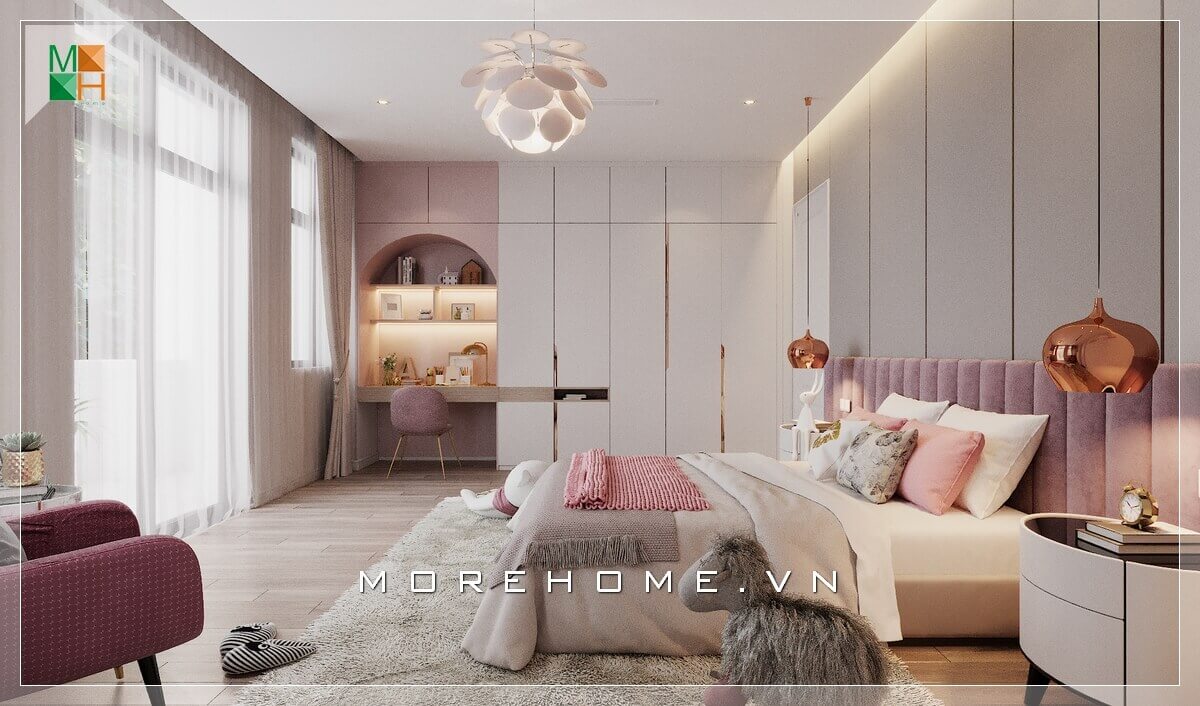 Mẫu thiết kế phòng ngủ master mang tông trắng - hồng vô cùng trẻ trung hiện đại mà không kém phần sang trọng